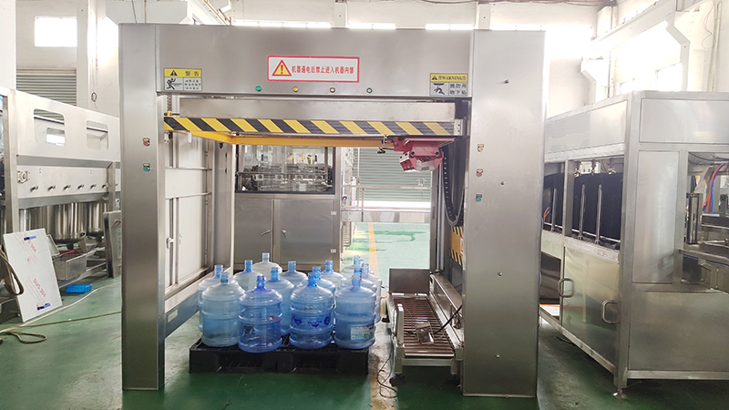 码垛机:自动排列成品桶装水产品,按设定好的程序依次堆放桶装水,大大减轻了人力。