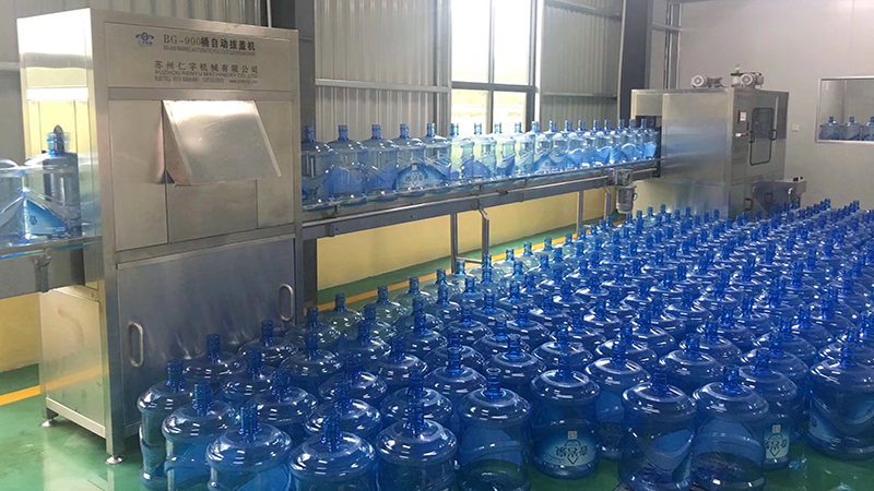 桶装水灌装设备整个洗瓶、灌装、套盖和压盖全过程均在封闭隧道内进行,有效地防止纯净水在灌装过程中可能发生的二次污染,完全符合卫生标准。
